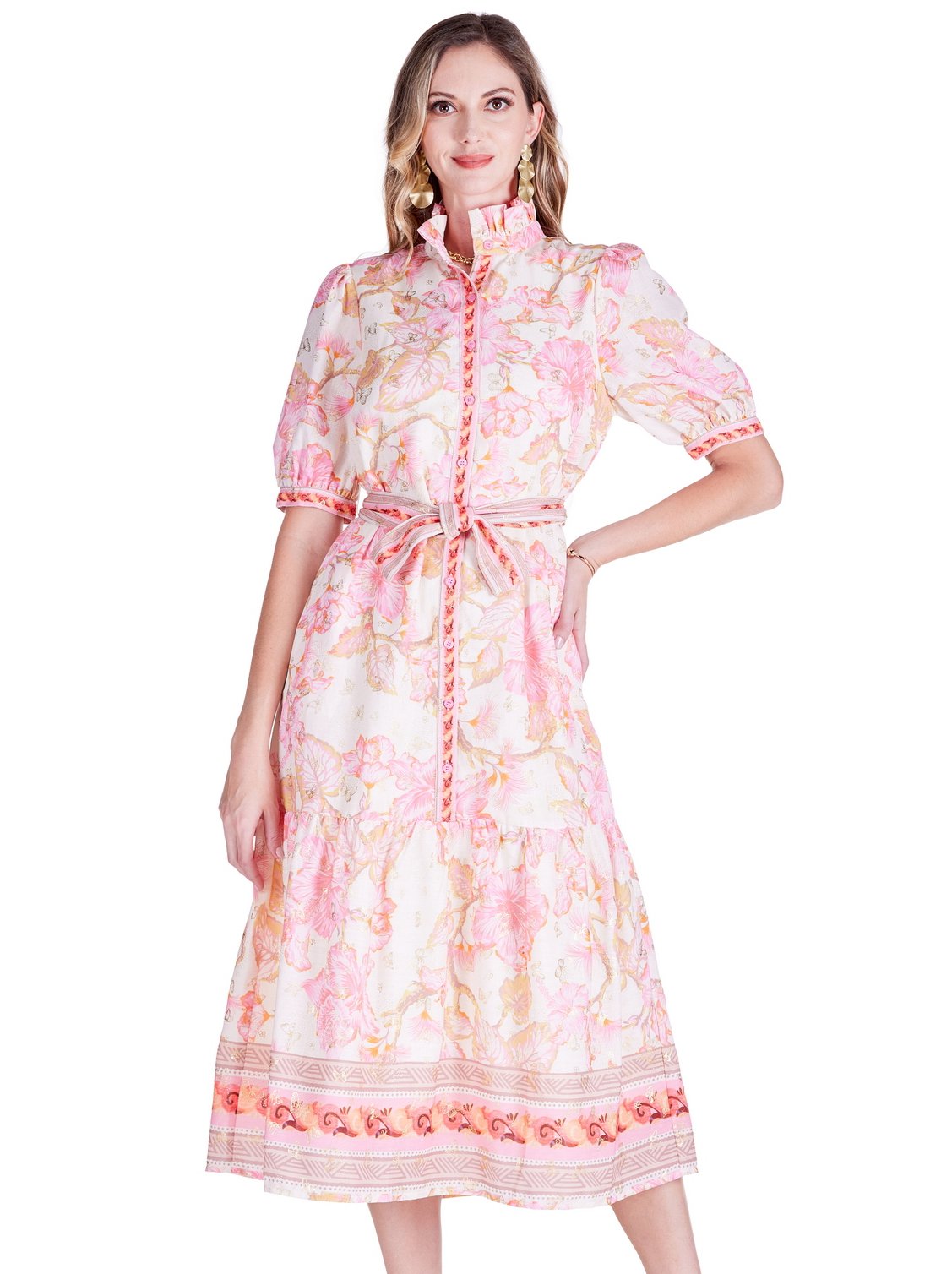 Button Front Short Sleeve Midi Dress Aloha Bloom Jade