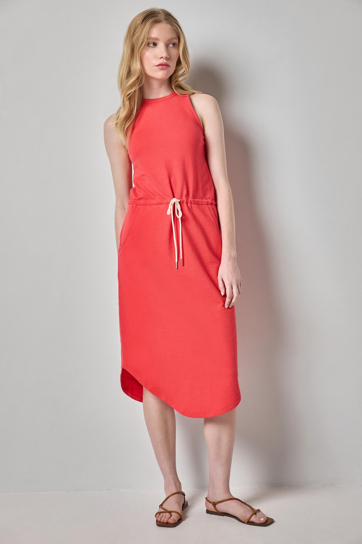 Our Textured Terry Shirttail Midi Dress is made from our new medium-weight cotton terry with a subtle slub texture that holds its shape beautifully. This sleeveless style features a natural rope drawcord at the waist, a rounded shirttail hemline, and functional pockets. Effortless and chic, it's the kind of piece you'll reach for all summer long.