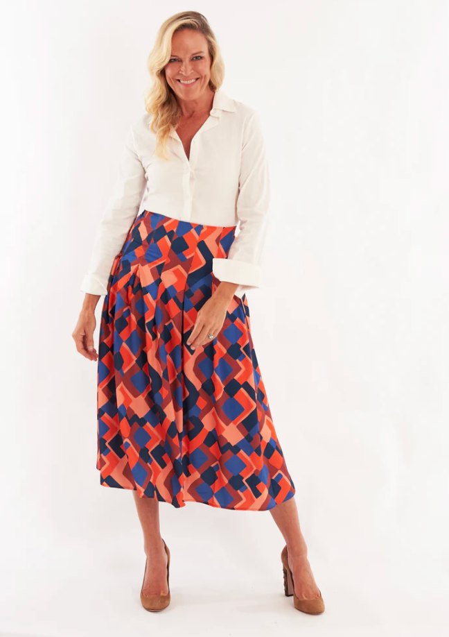 Step out in retro chic style with the Atoka Skirt in Tarpon Autumn. Featuring a timeless classic cut and playful pleats, this skirt adds vintage flair to any outfit. Perfect for twirling through the seasons with effortless charm.