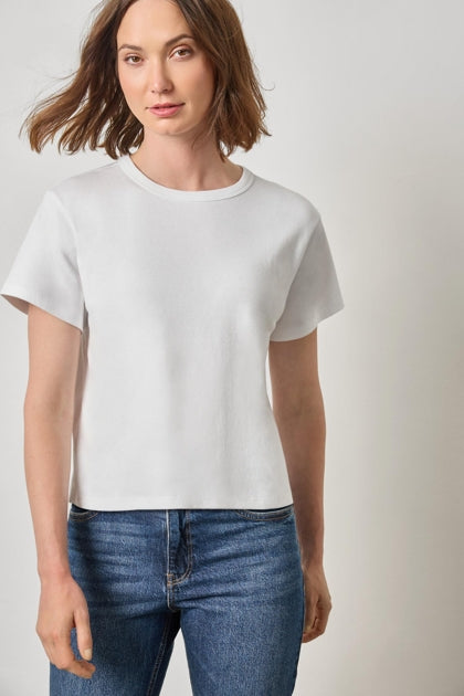 The Easy Tee is a new addition to our core 1x1 Rib collection. This relaxed short sleeve crewneck style has a slightly shorter body length that balances the easy fit for a modern shape. The sleeve length offers just the right amount of coverage, making it flattering and versatile. Designed in our signature 1x1 rib fabric, this tee has a slightly heavier weight that's perfectly opaque and never sheer, ideal for everyday wear.