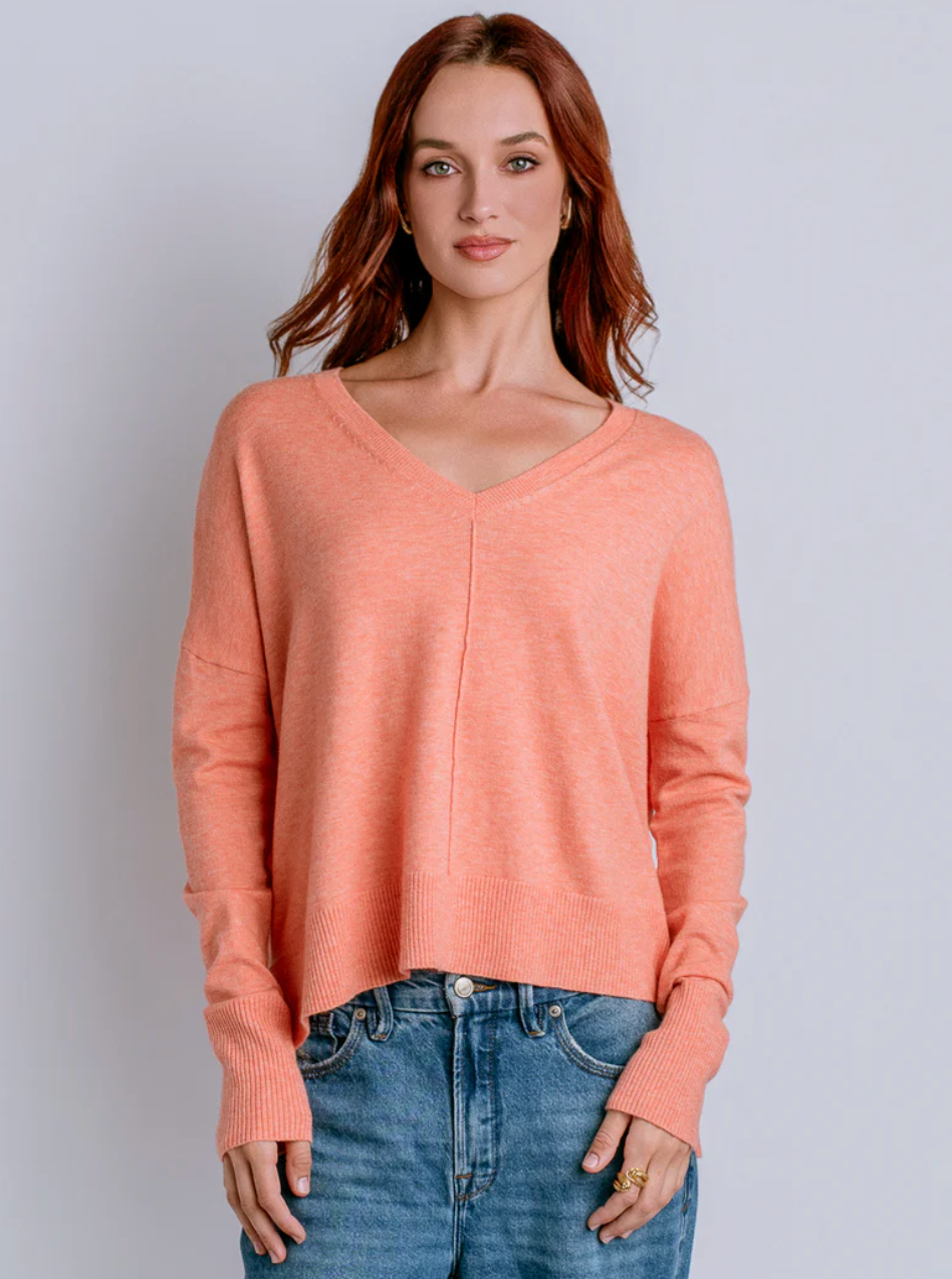 Oversized turtleneck hi/lo sweater in garter stitch with 3/4 sleeve with side slits